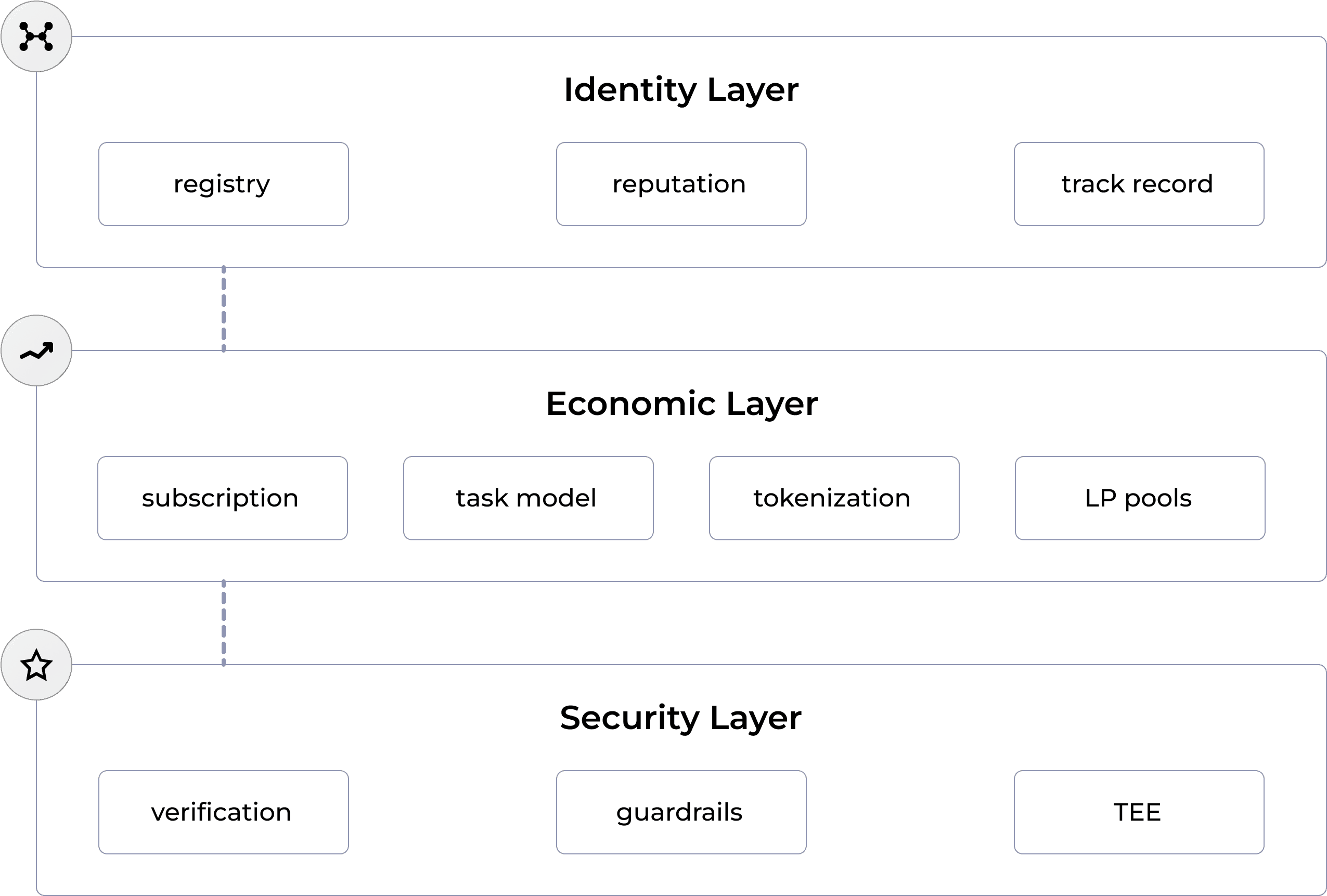 Ensemble is the foundational Web3 stack that powers trustless agent collaboration: identity, economy, and security layers.